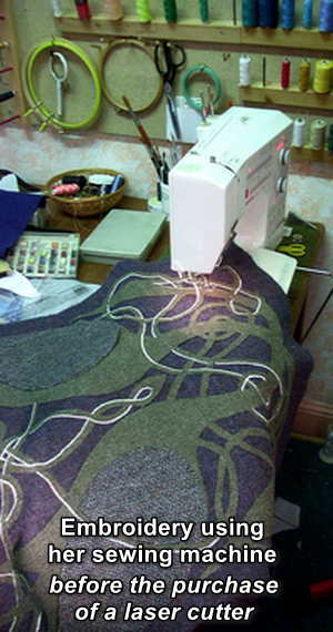 When ill health forced Ruth to seek early retirement from Highland Council, she decided to concentrate on building up Anna Macneil. It was also at this time when she began to develop her Vestment making skills. The first major piece of equipment that Ruth invested in was her laser cutter, but her embroidery work from the very beginning was done either by hand or using her favourite Bernina sewing machines. You will find the full Ecclesiastical Embroidery story under Vestments on the menu button - top left.